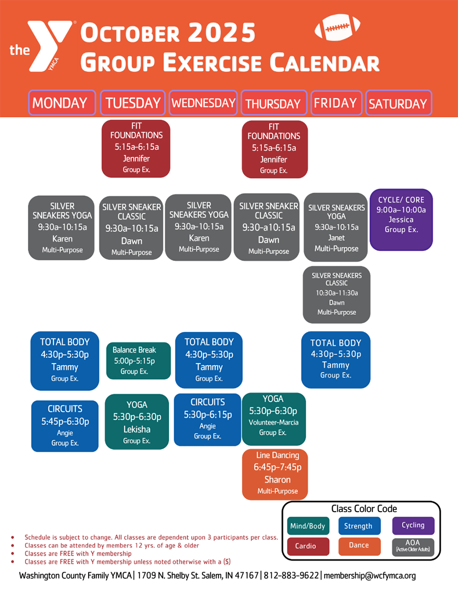 Washington County Family YMCA 1709 North Shelby Street | Salem, IN 47167 Telephone: 812-883-YMCA (9622)