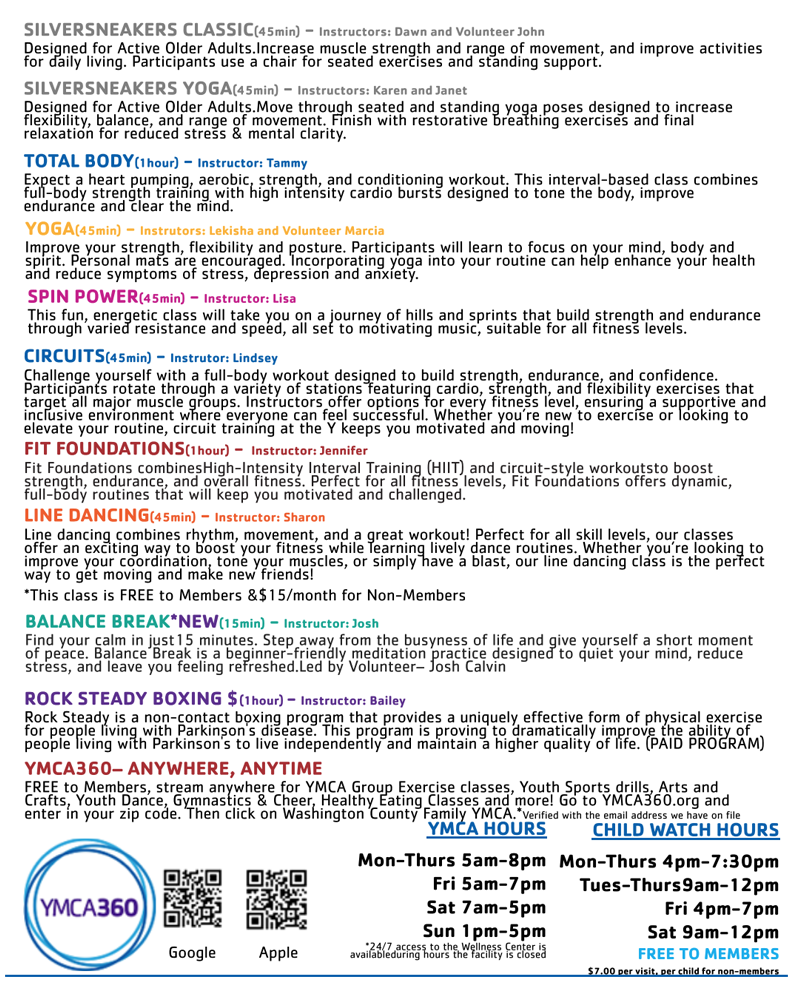 The Washington County Family YMCA is a 501(c)(3) non-profit social services organization dedicated to Youth Development, Healthy Living, and Social Responsibility.